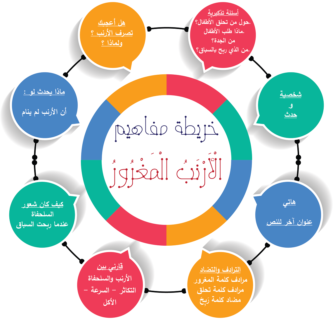 فِي إِحْدَى اللَّيَالِي تَحَلَّقَ الْأَحْفَادُ حَوْلَ الْجَدَّةِ. قَالَتْ سَلْوَى: نُرِيدُ أَنْ نَسْمَعَ حِكَايَةَ الْأَرْنَبِ الْمَغْرُورِ، قَالَتِ الْجَدَّةُ: بَيْنَمَا كَانَ الْأَرْنَبُ فِي سِبَاقٍ مَعَ السُّلُحْفَاةِ، اغْتَرَّ بِسُرْعَتِهِ وَقَالَ: سَأَنَامُ قَلِيلاً وَاستَمَرَّتِ السُّلُحْفَاةُ بِالسَّيْرِ وَرَبِحَتِ السِّبَاقَ وَنَدِمَ الْأَرْنَبُ .