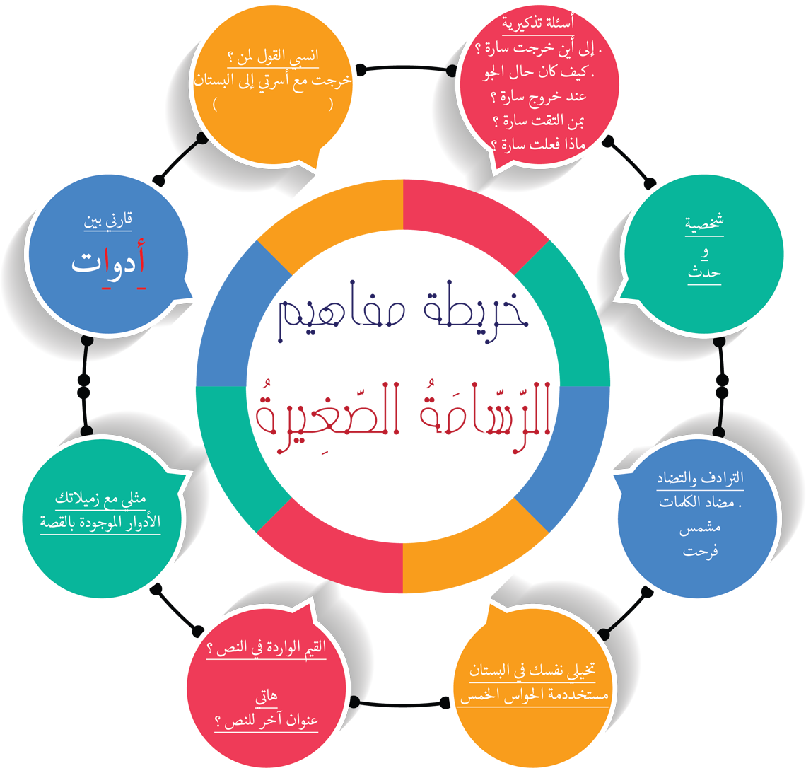 فِي يَوْمً مُشْمِسٍ خَرَجَتْ سَارَةُ مَعَ أُسْرَتِهَا إِلَى الْبُسْتَانِ ، وَكَانَتْ تَحْمِلُ سَلَّةً وَضَعَتْ فِيهَا أَدَواتِ رَسْمٍ ، وَهُنَاكَ لَقِيَتْ صَدِيقَتَهَا سَلْمَى. فَرِحَتْ كَثِيراً وَأَخَذَتْ تَلْعَبُ مَعَهَا، وَتَرْسُمُ مَنَاظِرَ أَعْجَبَتْهَا، ثُمَّ عَادَتِ الْأُسْرَةُ إِلَى الْمَنْزِلِ .